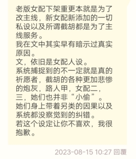 茶茶:老版女配下架重更本就是为了改主线,新女配新添加的一切私设以及所谓截胡都是为了主线服务。