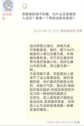 茶茶:因为那里以强壮浓艳为美,可周敏柔弱,婉约整个N47t碳星的人都以含蓄为美,长相偏向柔和清。并不符合星际世界对美的普遍认知。就好比唐以丰韵为美,宋以瘦为美一样。